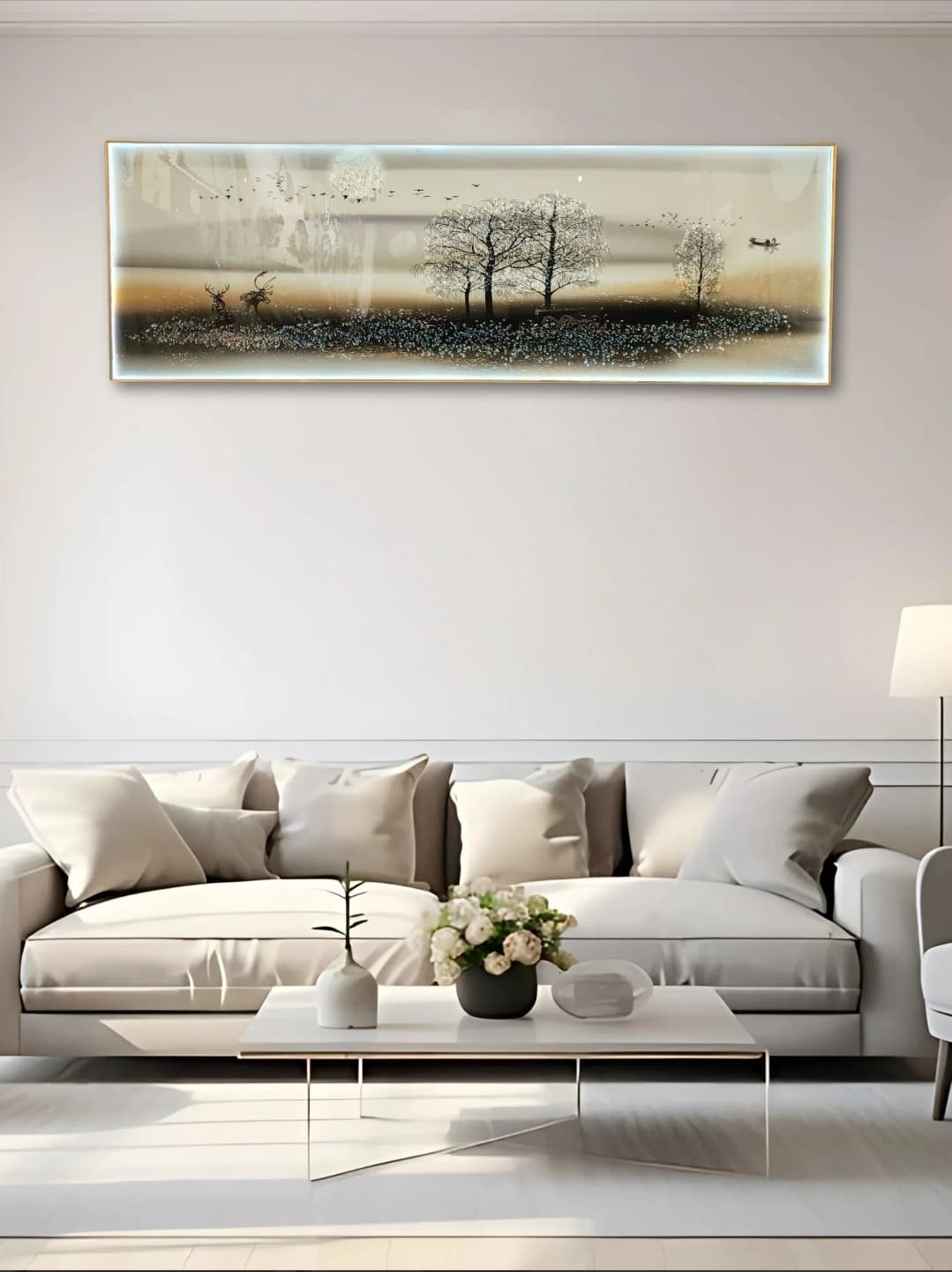 *Modern Crystal Painting with metal framing for decor with LED lights*