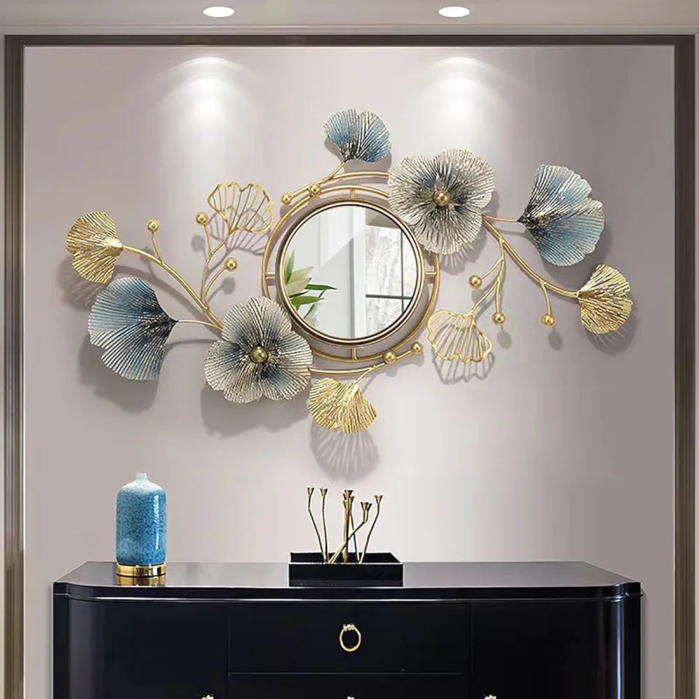 Decorative wall mirrors will attract instant attention from anyone walking into the room. This contemporary piece offers a geometric circle pattern, some filled in with a mirror others filled in glitter. Attached keyhole for hassle free hanging. Crafted from gold iron.