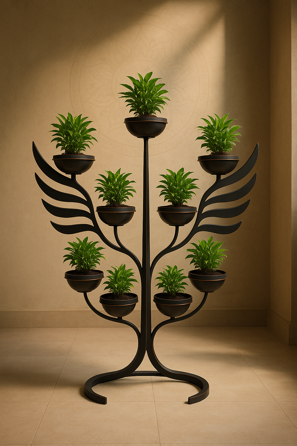 This planter stand isn’t just a display — it’s a sculptural tribute to art and nature. Perfect for modern Indian homes that appreciate divine symbolism and bold design.