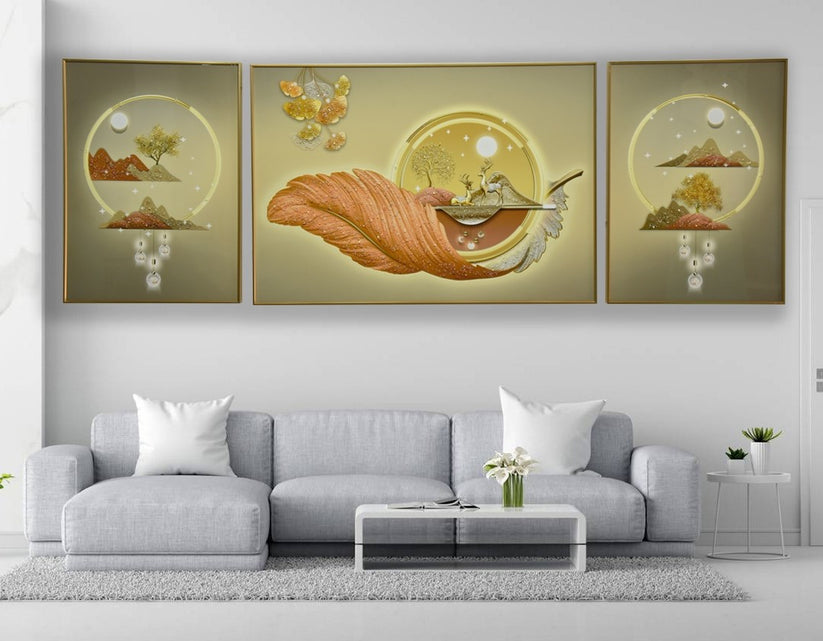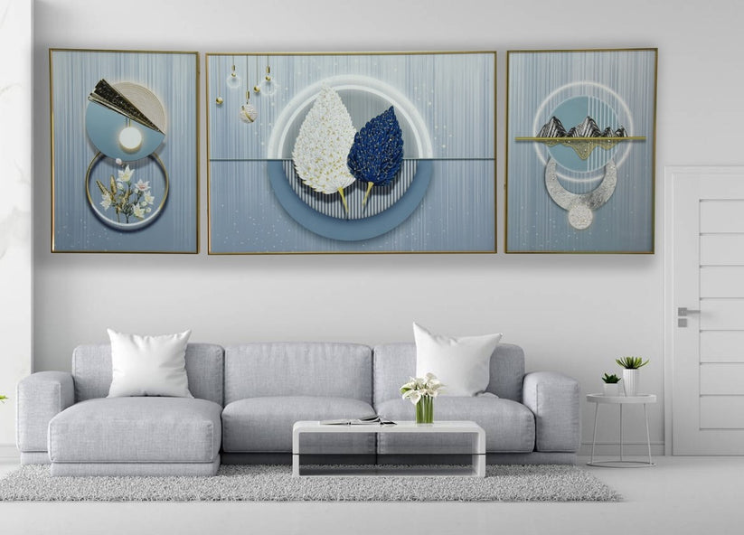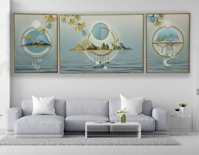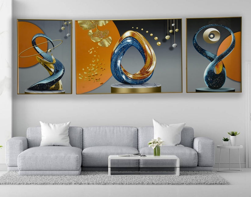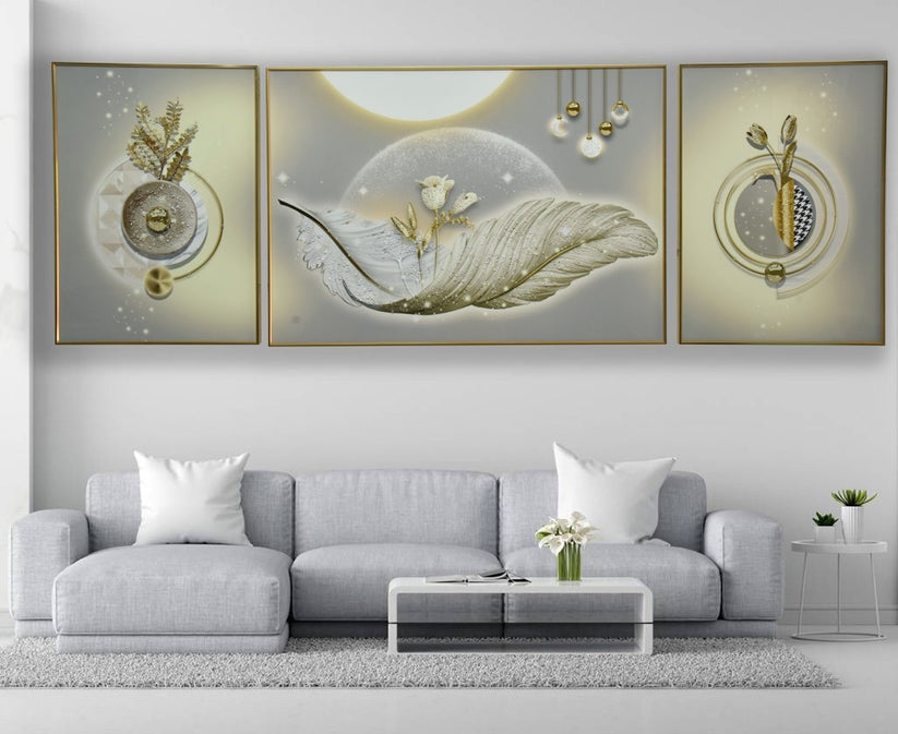 MODERN CRYSTAL GLASS PAINTING (SET OF 3)-GOLD FRAME