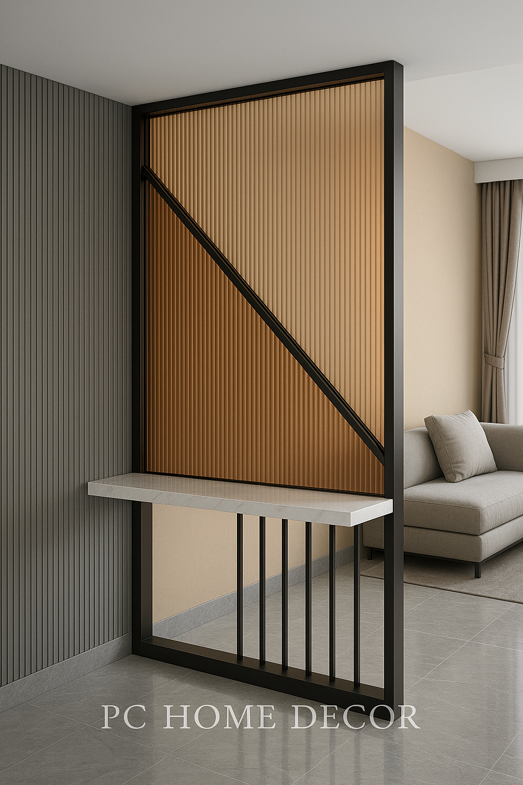 Elevate your interiors with this elegant metal partition, crafted in high-grade stainless steel with a sophisticated PVD finish. Its modern geometric detailing blends style with functionality, making it perfect for living rooms, dining areas, offices, or commercial spaces.