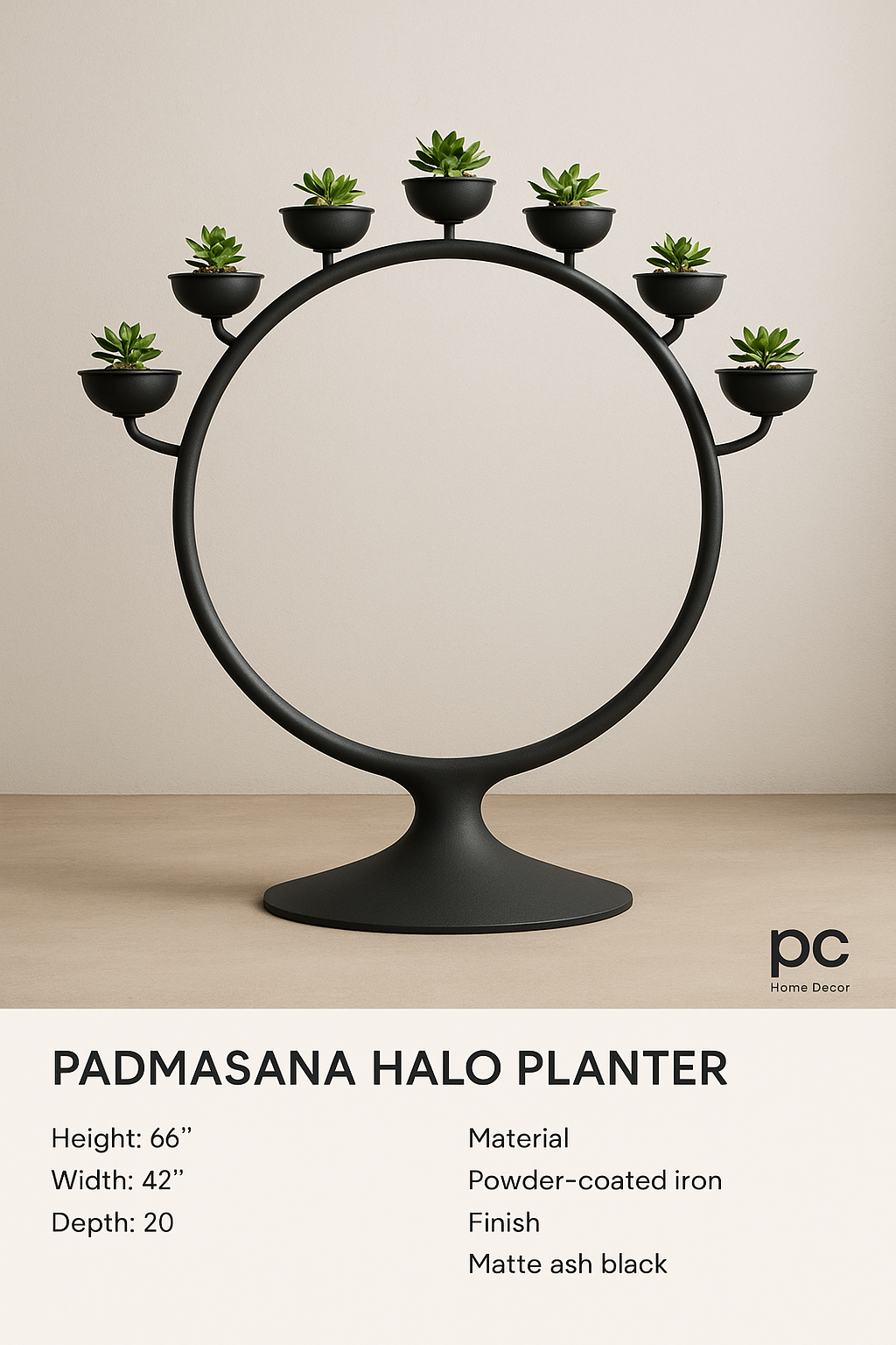 Rooted in stillness and sculpted for harmony, the Padmasana Halo Planter is a spiritual showpiece inspired by the serene strength of lotus posture (Padmasana). Designed as a circular arc resembling a meditative halo, it holds seven bowl-style planters on welded trays — merging sacred symbolism with modern form.