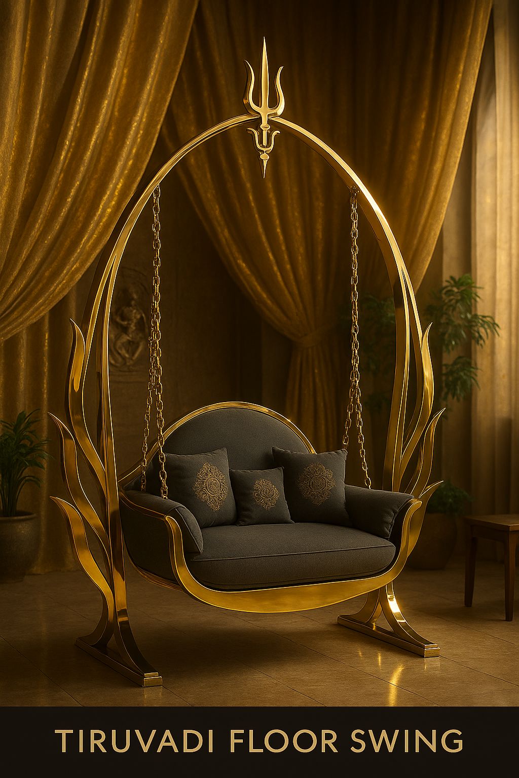 The Tiruvadi Floor Swing is a handcrafted homage to sacred geometry and cosmic balance — a freestanding swing inspired by the divine arch (tiruvasi) of Lord Shiva. Designed as a symbolic throne of both stillness and rhythm, it merges spiritual art with luxurious comfort.
